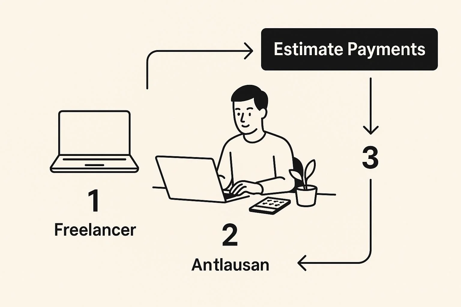 This workflow shows how a freelancer can go from estimating income to calculating their final payment.