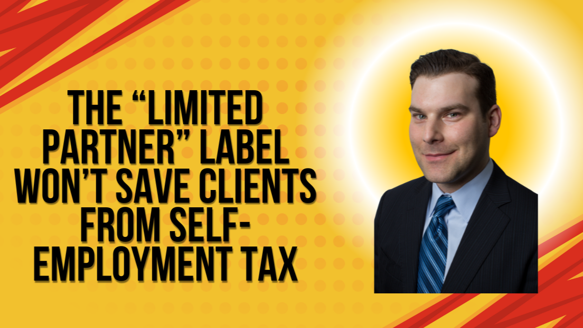 The “Limited Partner” Label Won’t Save Clients from Self-Employment Tax